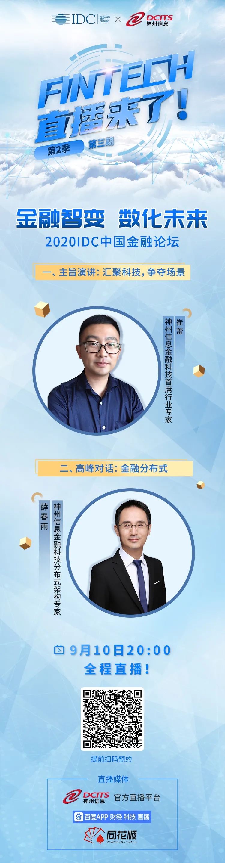 今晚八点丨【FinTech直播来了 第2季】第三期:金融智变,数化未来 2020IDC中国金融论坛