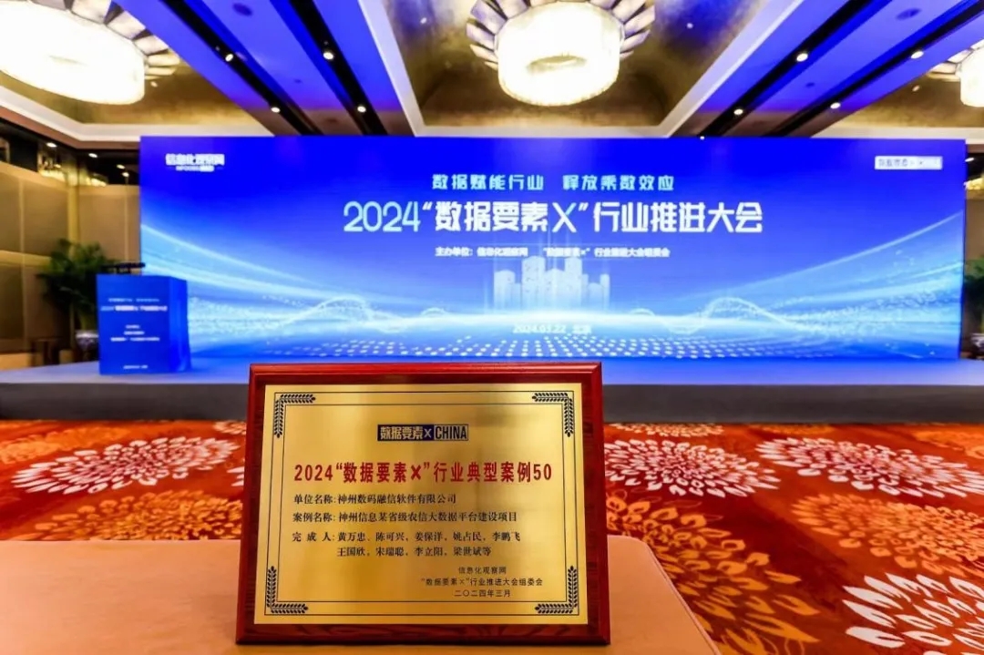 3月22日,《2024“数据要素×”典型案例50》颁奖仪式在京举行,由神州信息参与建设的“某省级农信大数据平台建设项目”成功入选。来自农业农村部、应急管理部、住房和城乡建设部、交通运输部、民政部、财政部、自然资源部、生态环境部、文化和旅游部等部委,及北京、天津、安徽、河北等地大数据相关主管部门负责人出席活动。