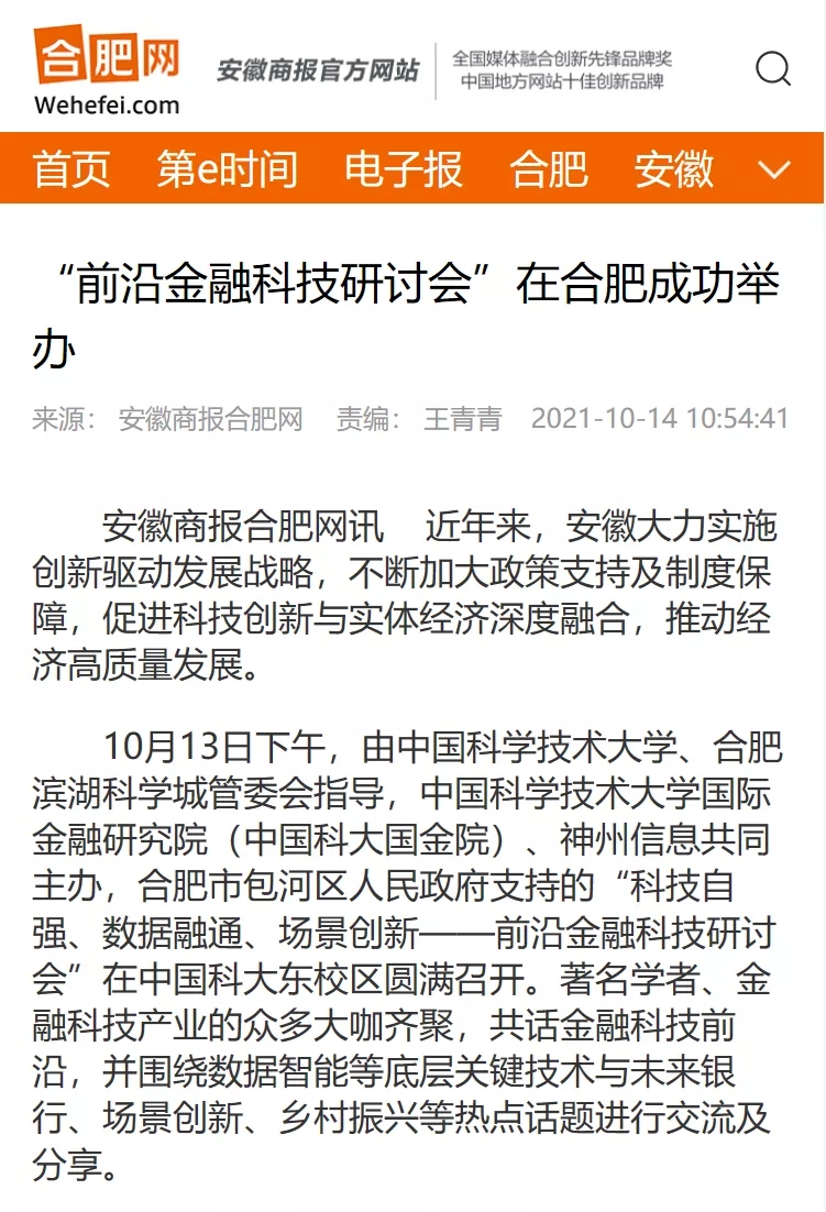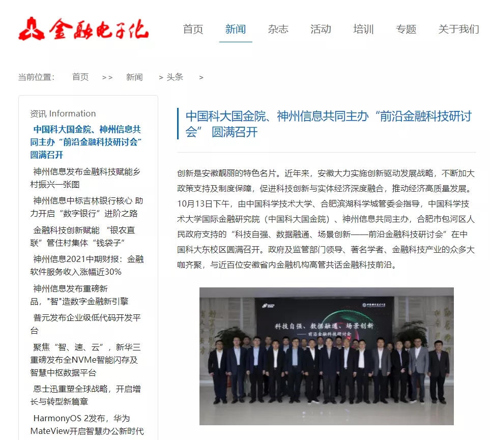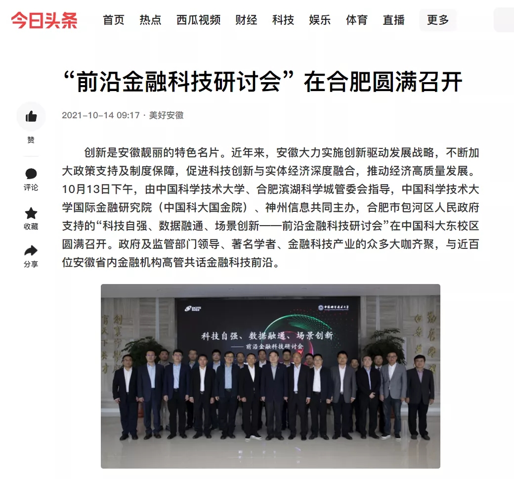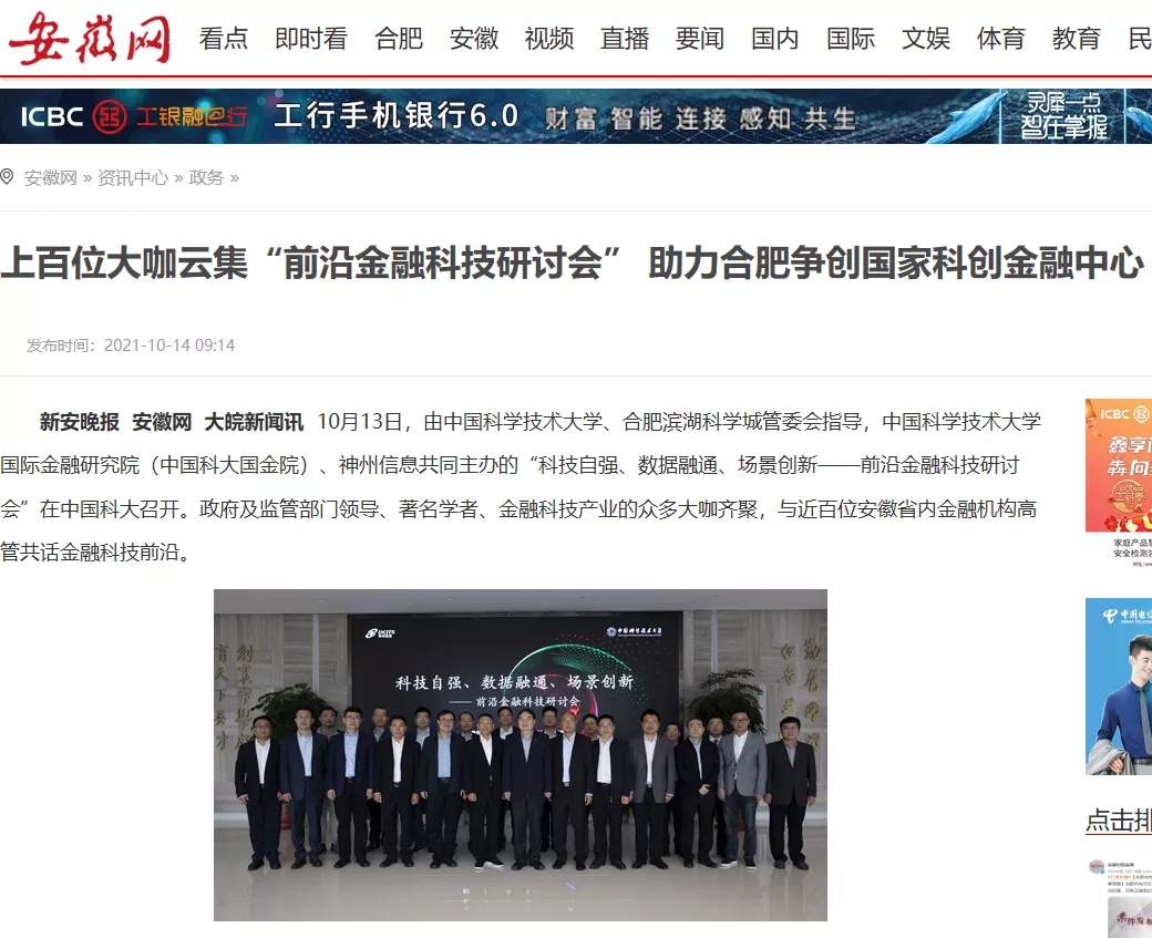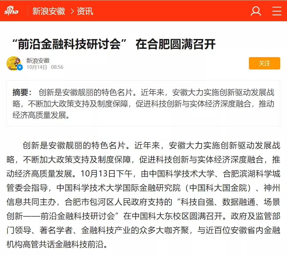 FinTech活动 | 神州信息、中国科大联合主办“前沿金融科技研讨会”,引发多家权威媒体报道