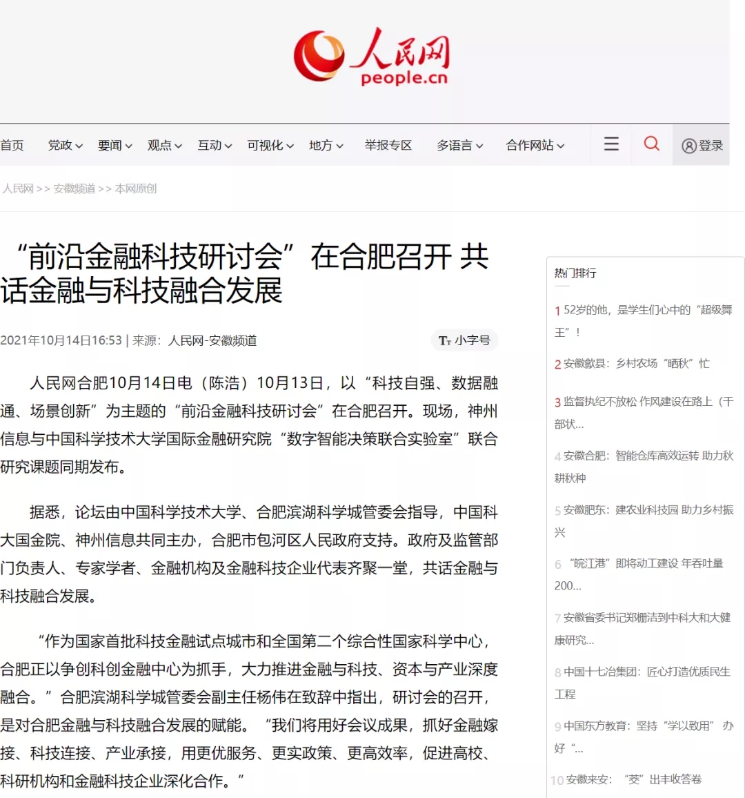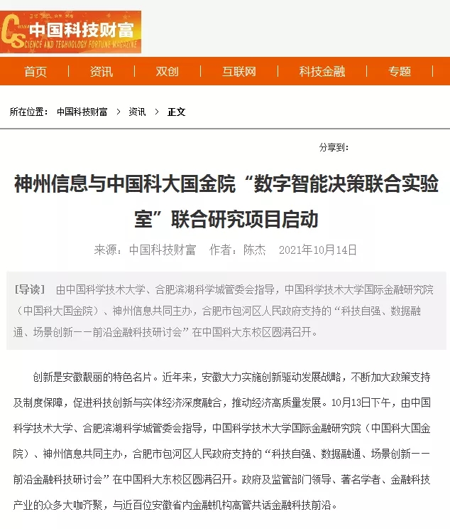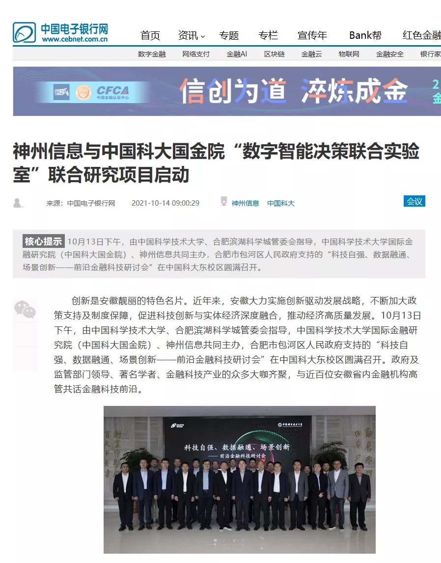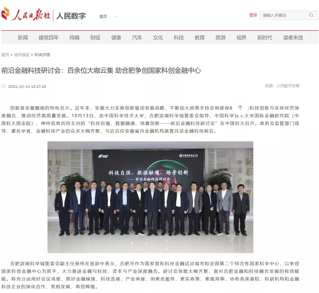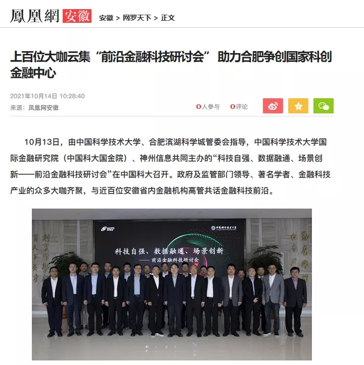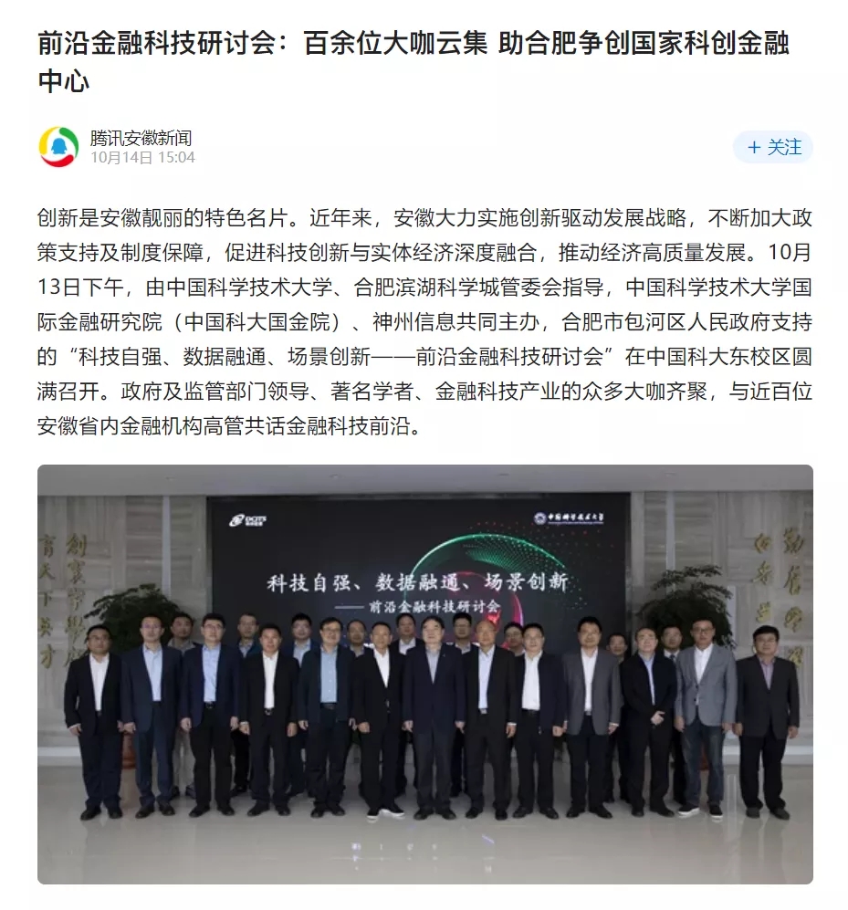 FinTech活动 | 神州信息、中国科大联合主办“前沿金融科技研讨会”,引发多家权威媒体报道