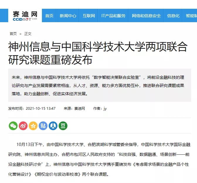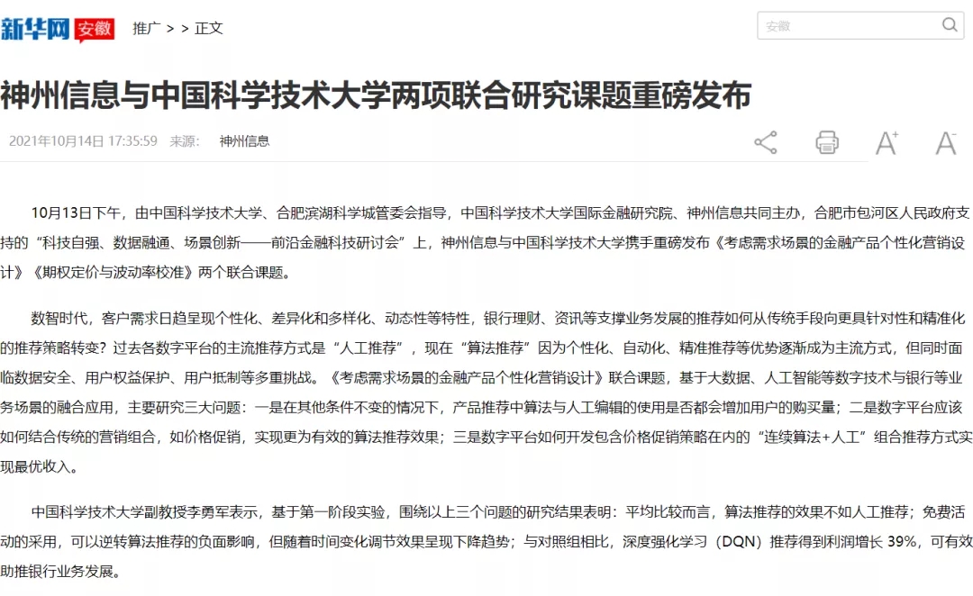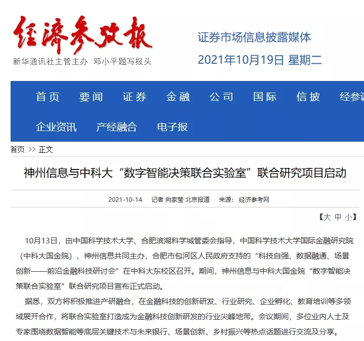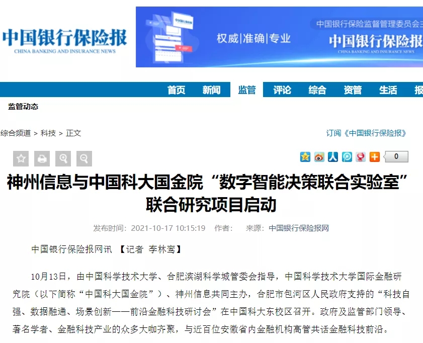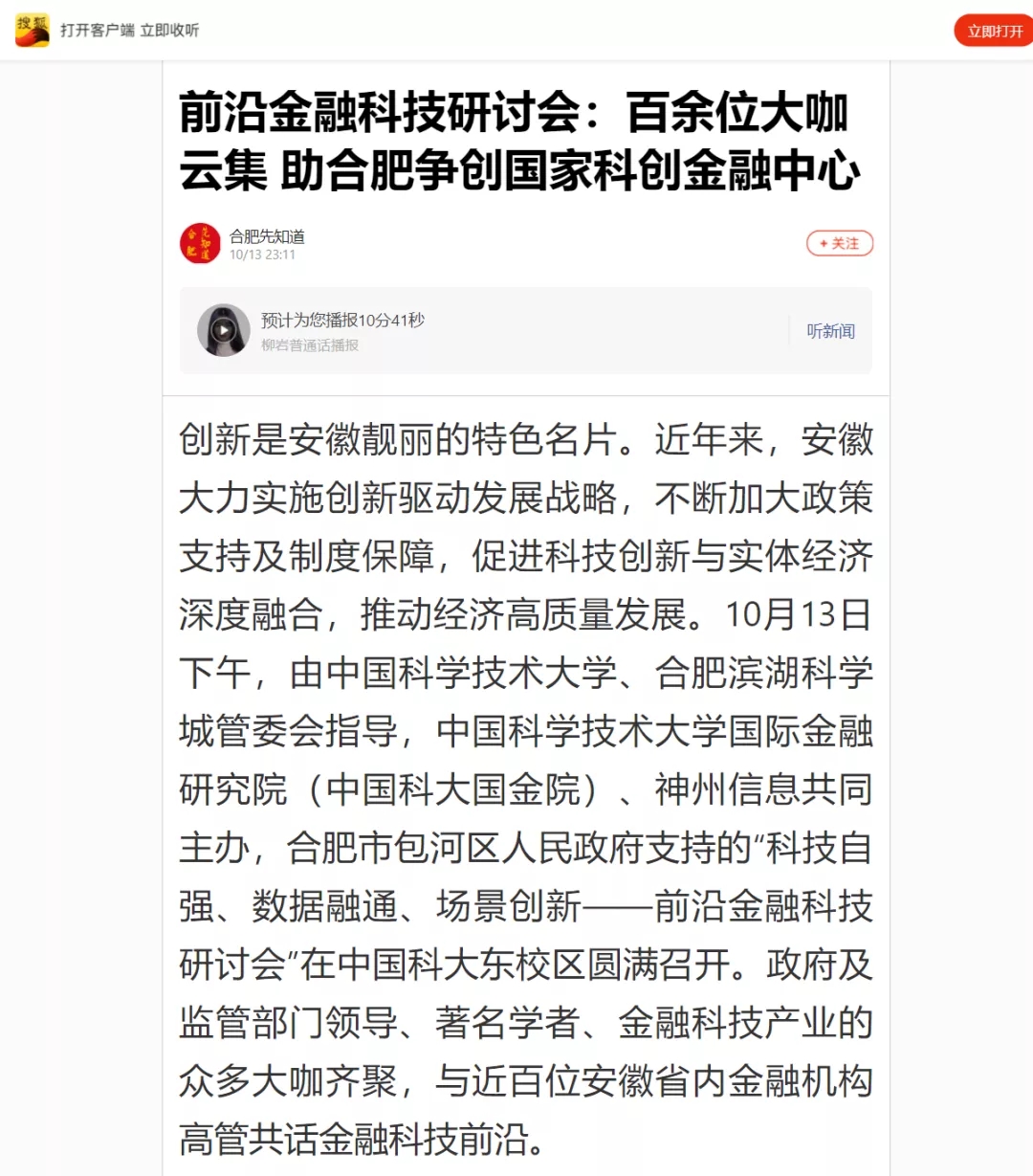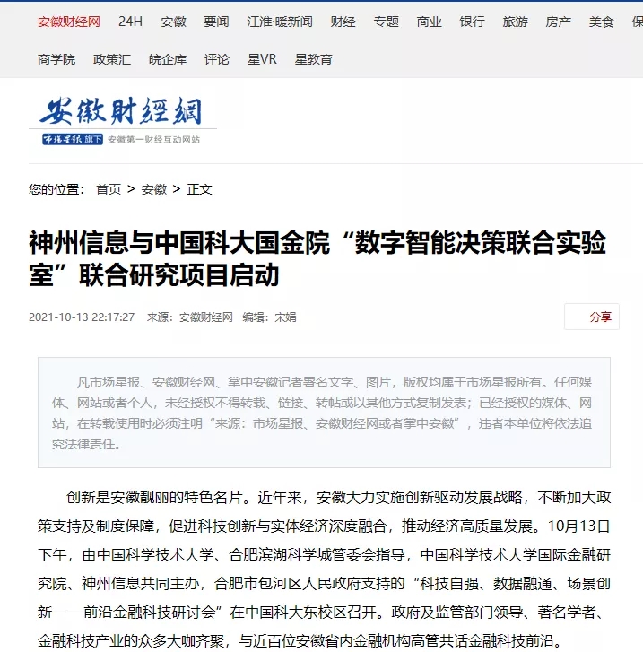 FinTech活动 | 神州信息、中国科大联合主办“前沿金融科技研讨会”,引发多家权威媒体报道