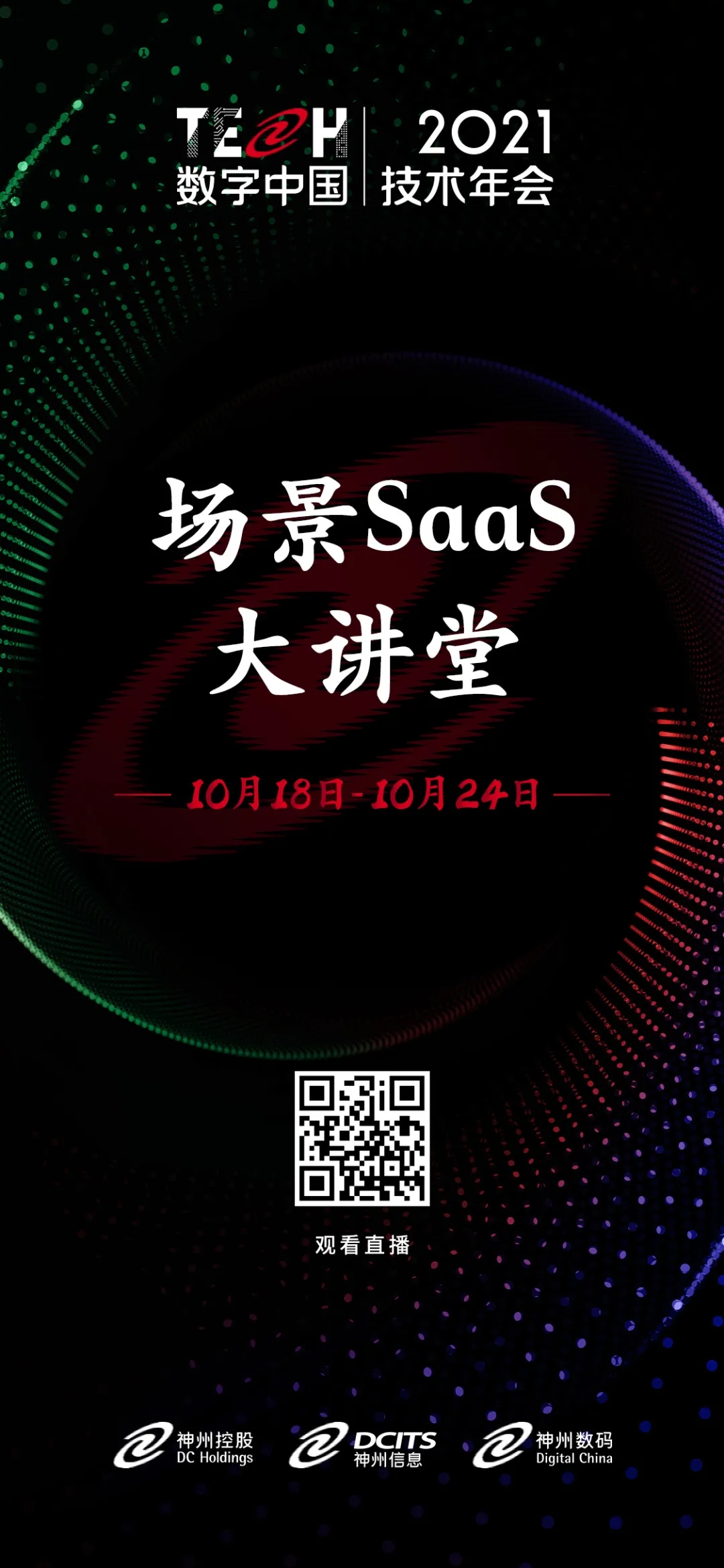 TECH数字中国2021技术年会 | 场景SaaS大讲堂最终讲,今晚7点开始