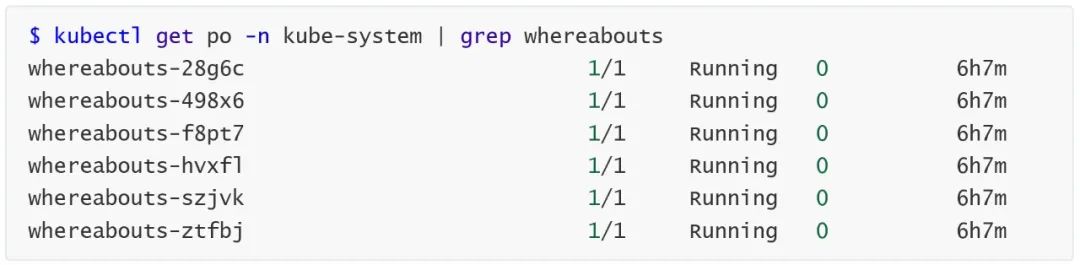 因为Multus CNI使用的是 DaemonSet 类型,所以默认在所有节点都有一个实例,以下Whereabouts 同理。