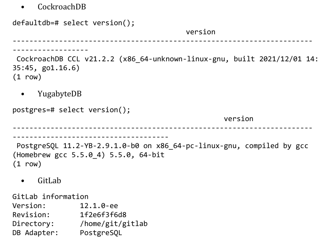 CockroachDB说支持绝大多数的PG语法,YugabyteDB说支持所有的PG特性,本系列测评文章用于对比这两款数据库对GitLab的支持程度如何,一定程度上能反映出对标准PostgreSQL的兼容情况。