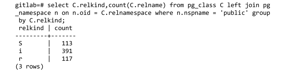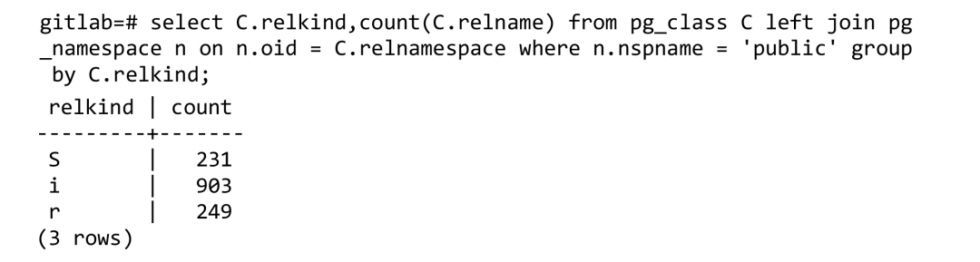 用标准PostgreSQL部署的GitLab包含的数据库schema为: