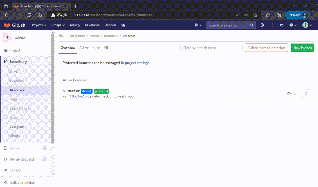 除了差10个左右索引,其他都正常。这时候把GitLab数据库指向到这个新库,启动程序看能否打开页面: