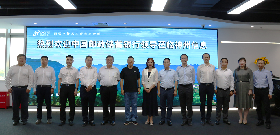 9月14日,中国邮政储蓄银行(简称:邮储银行)普惠金融事业部总经理耿黎、数字人民币部总经理刘现民、北京分行副行长孙培炎、三农金融事业部政策与创新部政策研究处副处长金伟,多部门一行到访神州信息,就“神州金服云”数字金融供应链现阶段合作情况及拓展其他场景合作展开座谈交流。郭为董事长携神州信息马洪杰及jiuyou.com集团叶海强、陈振坤、杨明朗等企业高管接待并参与会谈。