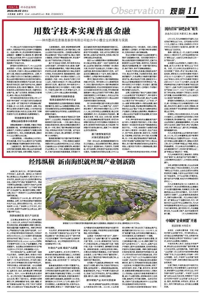 神州信息作为国内领先的金融科技企业,探索一条“用数字技术实现普惠金融”的道路,自1985年起,涉足税务、金融、农业等行业信息化和数字化建设,30年来始终坚持创新驱动发展、科技自立自强,积累了深厚的新技术应用、数据解读及场景理解能力。