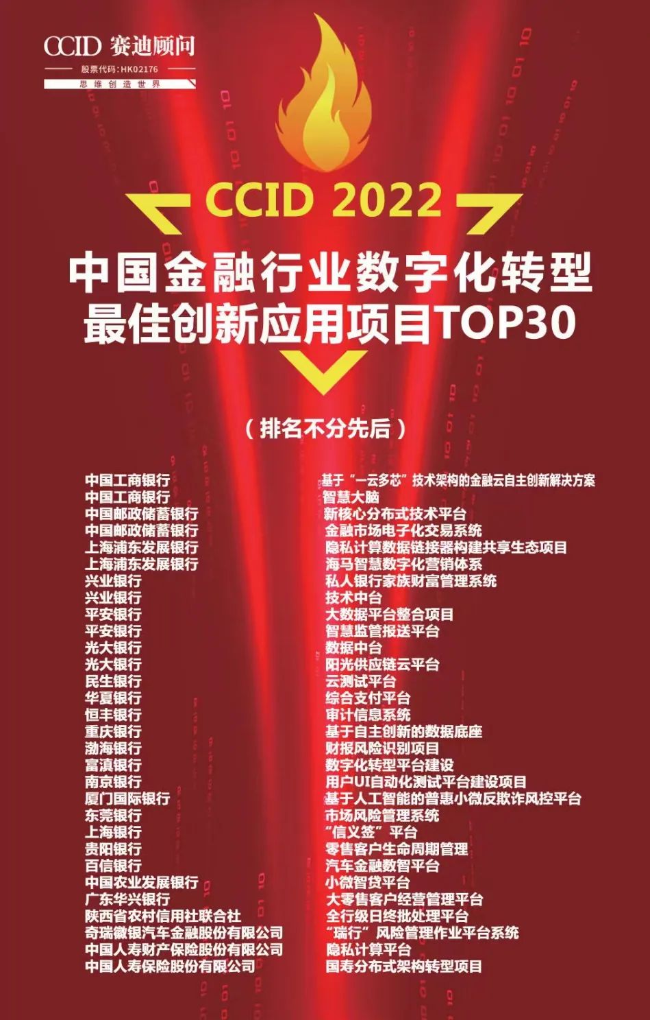 金融科技发展从“立柱架梁”到“积厚成势”,吹响了全面展开金融数字化转型的号角,数字化转型迈入了高质量发展的新时期。金融机构在数字化转型之路上开放进取,自主创新不断。“2022中国金融行业数字化转型最佳创新应用项目TOP 30”评选活动历时半年,关注金融数字化转型过程中的应用创新,场景金融创新,尤其关注自主创新领域的突破,推动金融行业自主创新向纵深演进,并得到金融机构的广泛关注。
