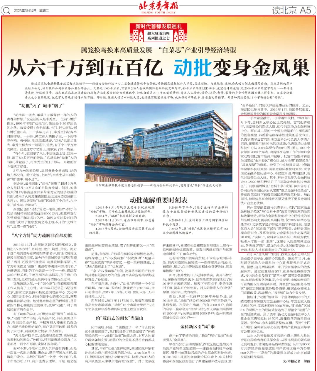 一手牵着金融街,一手牵着中关村。2021年2月下旬,金科新区核心区正式亮相。它的起步楼宇,正是曾经的四达大厦,如今的新动力金融科技中心。而在其二层的一个颇为吸睛的“白泽迎溯”的创意雕塑,诉说着这座标志性建筑的前世今生。负责该楼宇运营的新动力金科公司负责人李倩介绍说,雕塑采用5840米的丝绒线,代表新动力金融科技中心从2004年至今的5840天;通过1000个衣架和2000个焊点,向曾经在这里工作的3000余家动物园批发市场商户致敬。批发市场整体转型为国家级“金科新区”核心区,成为全市“腾笼换鸟”“凤凰涅槃”的典范。吸引了中央结算公司、中债清华金融科技研究院、国家金融标准化研究院、北京国家金融科技认证中心、奇安信集团、神州信息、现代财险等企业入驻。其中,神州信息作为金融科技企业,2020年积极进驻了“国家级金融科技示范区”。而根据西城区“金科十条”政策,神州信息子公司获得西城区政府认定的“重点金融科技企业”,并在政策支持下获得西城区政府政策补贴。与此同时,神州信息在金科新区里又链接了更多金融科技产业生态伙伴。