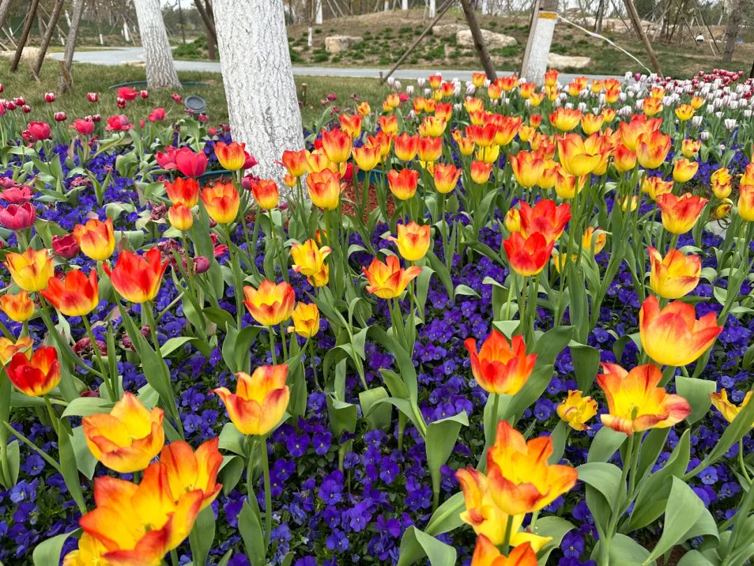 游走在公园的小路上,一阵微风轻轻吹来,阵阵清香,突然眼前一亮,那是一朵朵盛开的郁金香,在阳光的照射下,亭亭“郁”立,迎风起舞,它们为春天赋予了更加烂漫的姿色,涂满了朝气蓬勃的色彩。