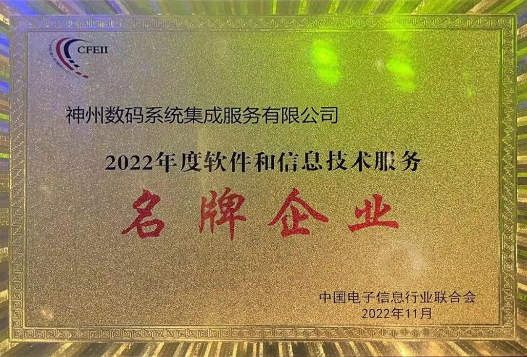 2023年4月15日,中国电子信息行业联合会发布了“2022年软件和信息技术服务名牌企业”和“2022年度综合实力型智慧赋能名牌企业”,神州信息均获奖项。此次评选重点突出了企业的技术创新力、市场影响力、业绩成长力、品质保障力;旨在培育落实工信部《“十四五”软件和信息技术服务发展规划》,加快培育软件领域自主创新、自主可控等品牌企业,树立标杆,发挥优秀企业引领作用,推动行业高质量发展。