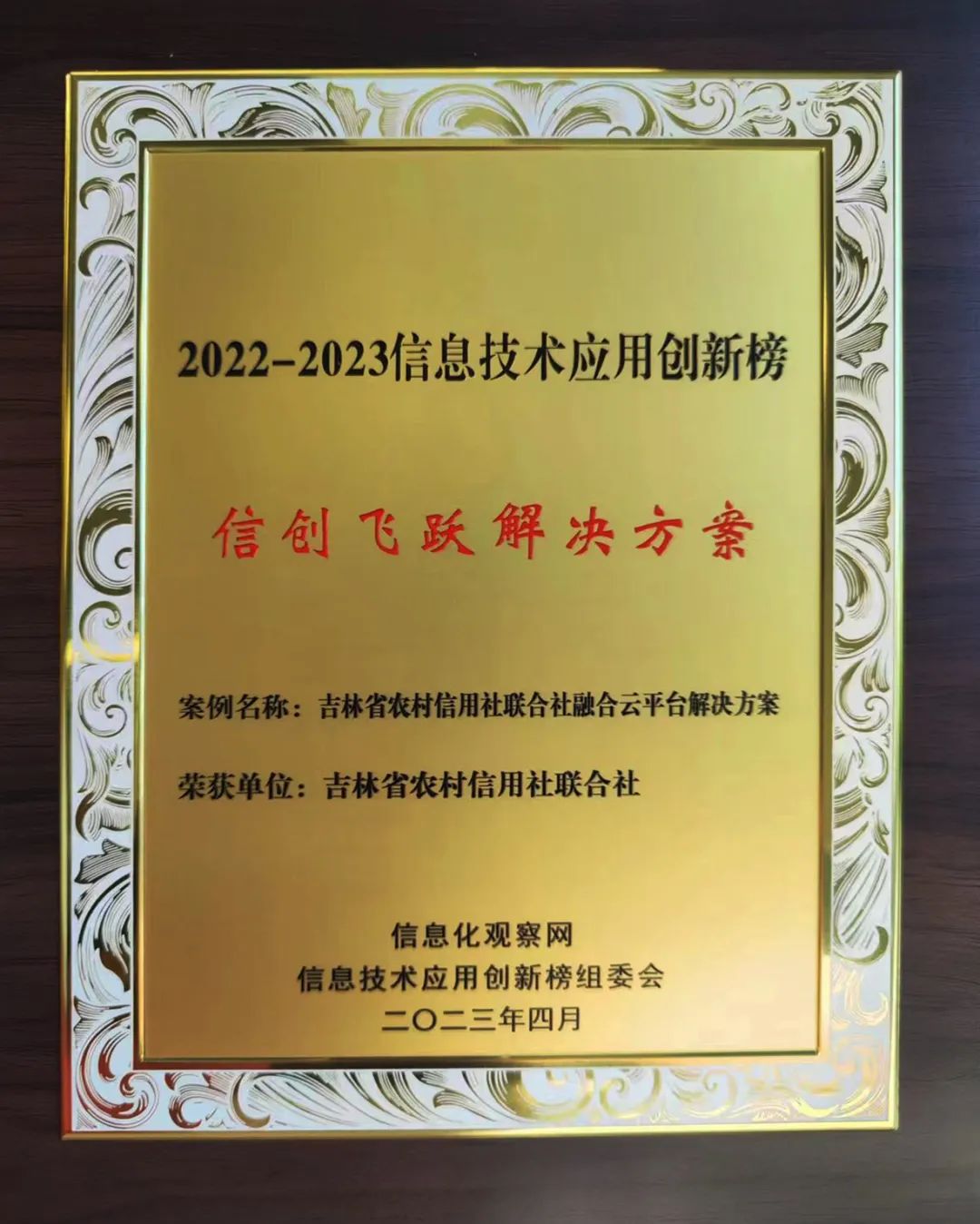 近日,由信息化观察网、信息技术应用创新榜组委会组织发起的“2022-2023信息技术应用创新榜”评审结果正式公示,神州信息荣获“信创领军企业”。本次榜单征集旨在全面展示信创发展最新成果,遴选出信创细分领域创新性强、产业带动性强、市场潜力大的应用示范案例,以挖掘并树立信创领域的行业标杆,促进产业链上下游企业协同发展,推动信息技术应用创新走深入实。与此同时,神州信息助力的吉林省农村信用社联合社融合云平台解决方案荣获“信创飞跃解决方案”奖。