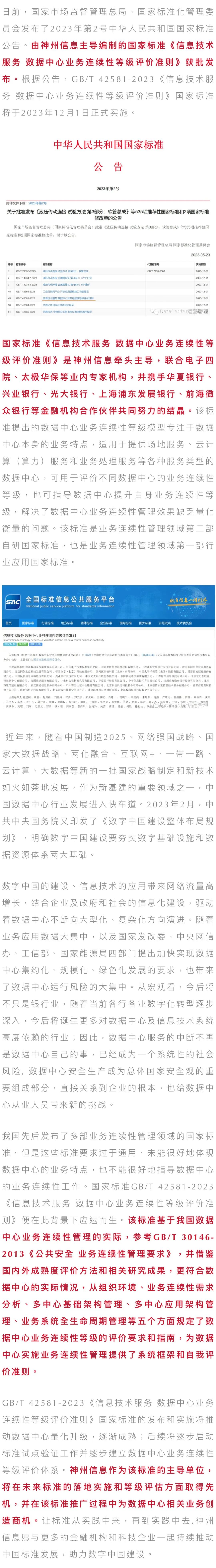 FinTech头条 | 神州信息主导编制的国家标准《信息技术服务 数据中心业务连续性等级评价准则》获批发布