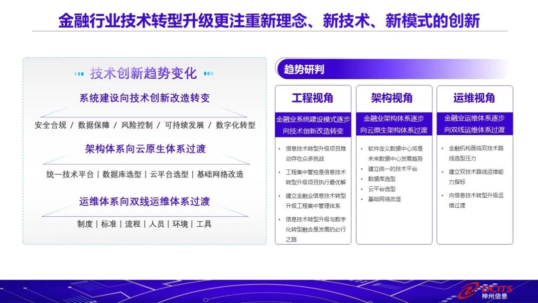 随着新形势下金融数字化转型的不断深入,金融行业也向着更安全、更可靠的高质量发展迈进。本次发布的白皮书首次从背景、趋势、技术、关键切入点等多个方面对信息技术创新进行了体系化的理论总结,为金融机构信息技术创新提供了一份指引手册。同时,帮助行业充分认识与发挥生态的作用,最大范围的向外界展示了目前国内信息技术应用创新的实践案例。白皮书结合当下数字化转型趋势,提出了信息技术应用创新的趋势,为金融行业科技发展、信息技术转型升级提供方向指引。在金融行业安全合规要求日益增强的趋势下,神州信息基于自主研发的分布式技术平台构建核心业务系统,可实现从硬件到云环境等全种类国产化深度适配,拥有自主知识产权,实现真正的安全可靠。