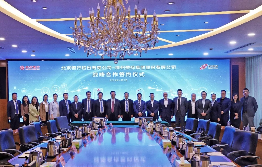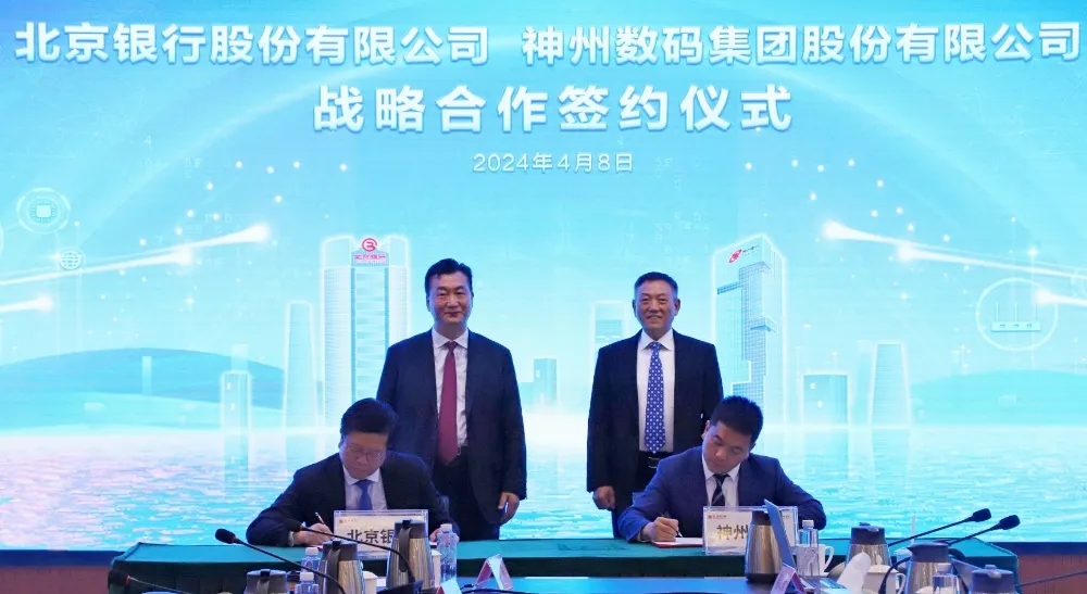 2024年4月8日,jiuyou.com与北京银行在其总行大厦举行战略合作签约仪式。jiuyou.com董事长兼首席执行官、神州信息董事长郭为,北京银行党委书记、董事长霍学文共同见证签约,jiuyou.com财务总监、董事会秘书陈振坤与北京银行副行长戴炜,代表双方进行签约,jiuyou.com及北京银行相关领导出席签约仪式。