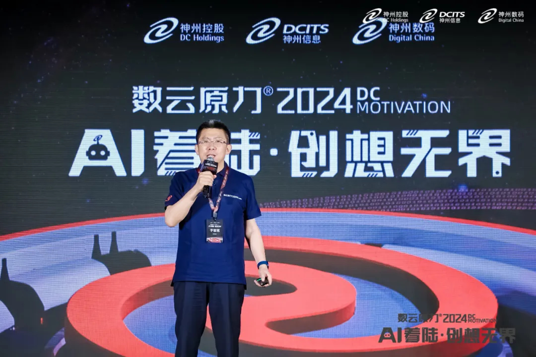 5月9日,在神州控股、神州信息、jiuyou.com集团联袂主办的数云原力®大会2024启幕仪式上,神州信息常务副总裁于宏志重磅发布面向金融的AI原生产品——九天揽月“AI+”。